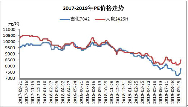 中秋節(jié)歸來,受原油走高及宏觀面消息提振,9月16日線性期貨大幅上行,與前交易日相比,漲300或3.98%。配合石化庫存低位,石化借此推漲,市場心態(tài)好轉(zhuǎn),中間商封盤惜售,市場報盤強(qiáng)勢走高。